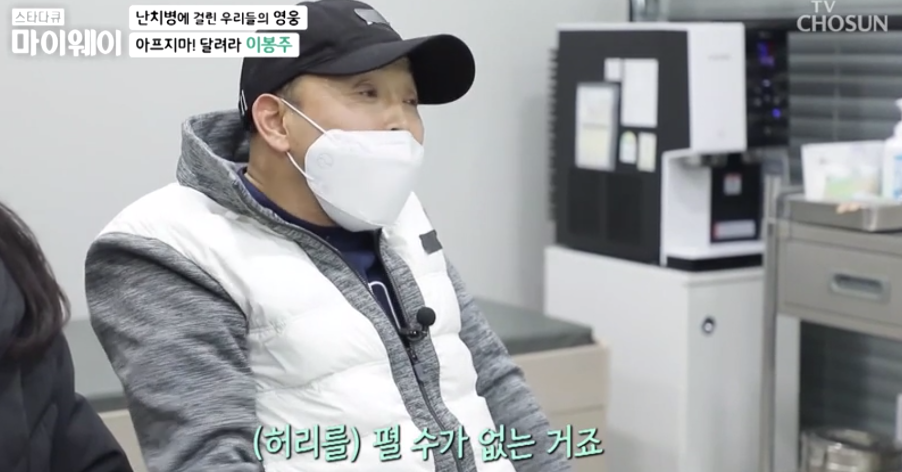 이봉주가 TV조선 스타다큐 마이웨이에 출연해 난치병에 대한 근황을 이야기했다. 이봉주는 전국민이 거의 다 아는 대표적인 국가대표 마라토너이다. 1998년 방콕 아시안게임 그메달, 1996년 애틀랜타 올림픽 은메달로 유명하다. 작년에는 뭉쳐야찬다에서 등장하며 활약했으나 중도 하차했는데 알고보니 하차 이유가 난치병 때문이었다. 방송에서 허리가 구부정했는데 그 때 신경을 써야 했다며 아쉬워했다.