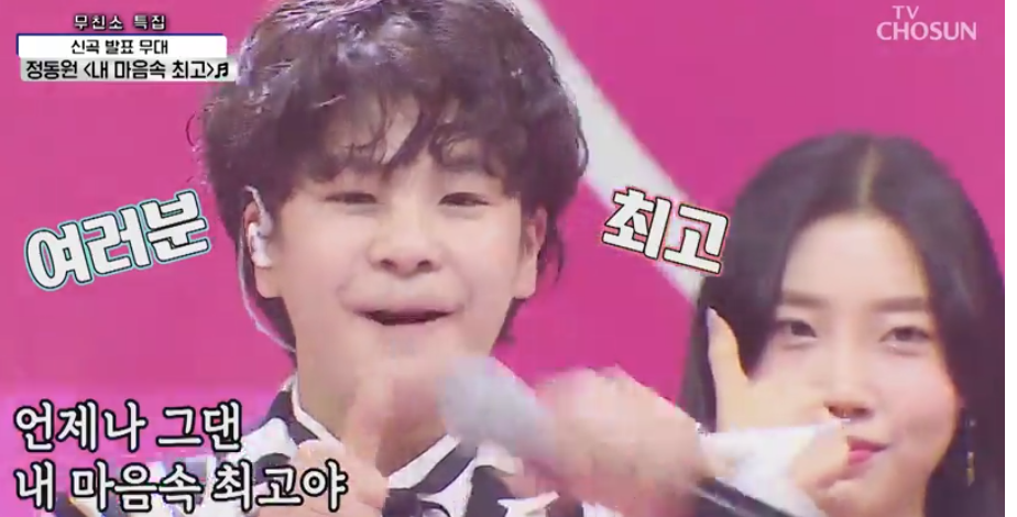 내마음속최고 대박이야 상큼 청량 발랄 듣고 있으면 마구마구 행복해져 인간비타민 정동원 처럼 기분 좋아지고 힘이나는 노래